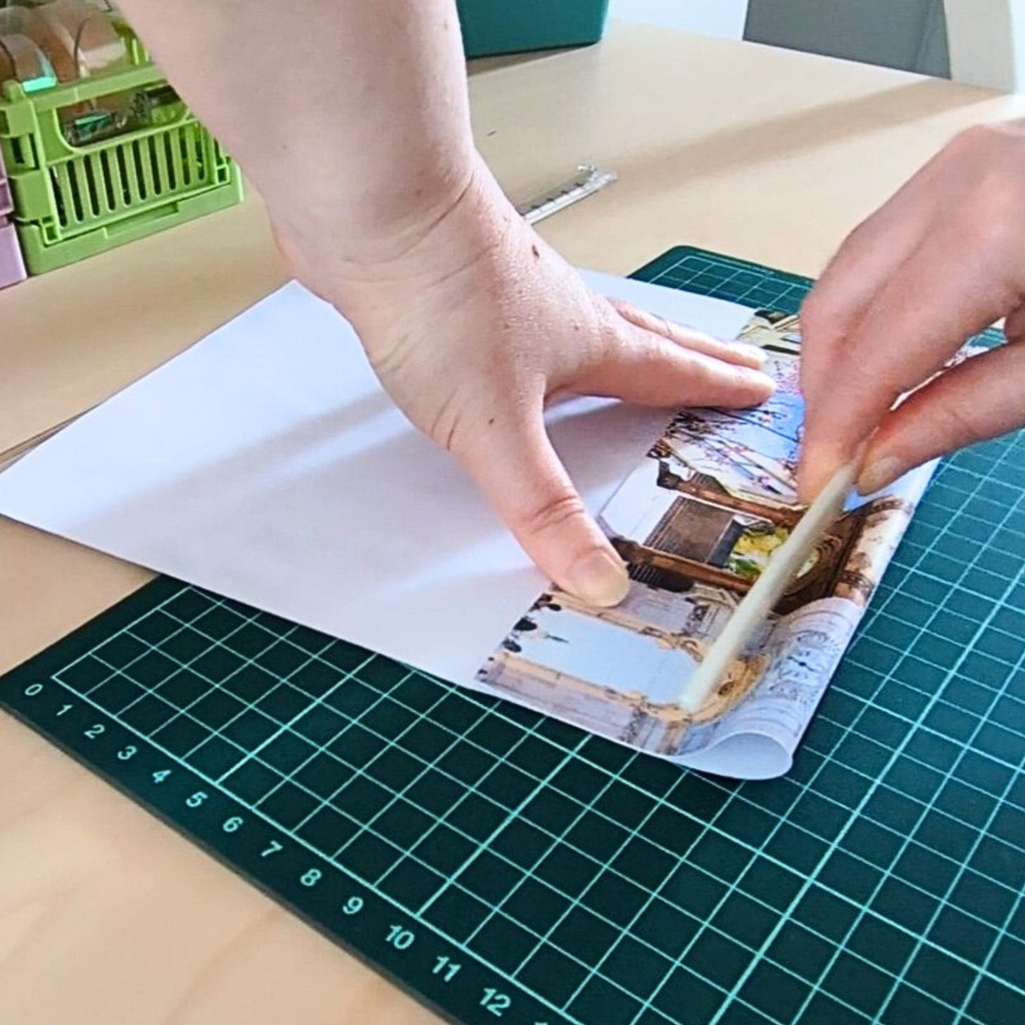 Despite numerous attempts, my printer will not print to the edge so there’s always a small amount of white space to trim. I cut right up to the edge of the image. You’ll likely have a little bit more to trim off if you’re using 8.5” by 11” paper.Fold along the edge of each image/page.